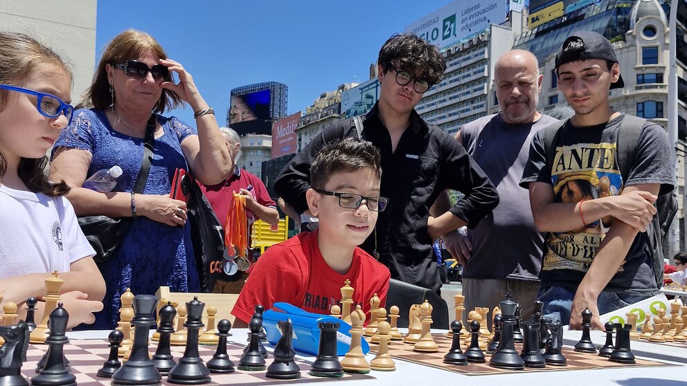El Obelisco se convirtió hoy en el escenario de un festival de ajedrez que reunió a vecinos y turistas en una jornada única dedicada a este deporte ciencia. La propuesta permitió presenciar partidas simultáneas entre grandes maestros y el equipo olímpico argentino, en el marco de las celebraciones por los 100 años de la Federación Internacional de Ajedrez (FIDE, por sus siglas en francés).